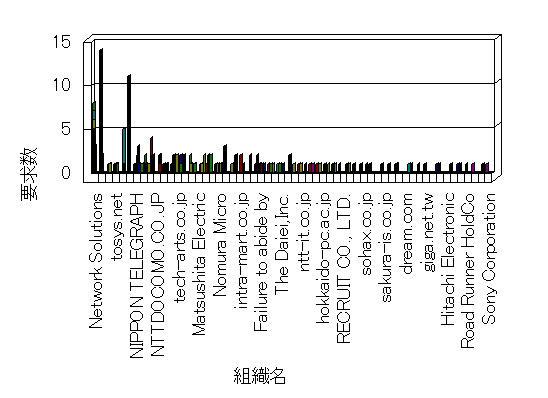 組織ユーザーにインターネット接続を提供する、商用または非営利団体、学術・行政機関などの、インターネット ドメイン で識別される団体や組織です。Microsoft Site Server Analysis は同じ組織に登録されたすべてのドメインを 1 つの組織としてグループ化します。ドメインがデータベースで使用できない場合は、1 つのインターネット ドメインが 1 つの組織を識別するのに使用されます。