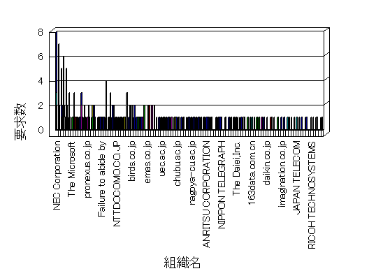 組織ユーザーにインターネット接続を提供する、商用または非営利団体、学術・行政機関などの、インターネット ドメイン で識別される団体や組織です。Microsoft Site Server Analysis は同じ組織に登録されたすべてのドメインを 1 つの組織としてグループ化します。ドメインがデータベースで使用できない場合は、1 つのインターネット ドメインが 1 つの組織を識別するのに使用されます。