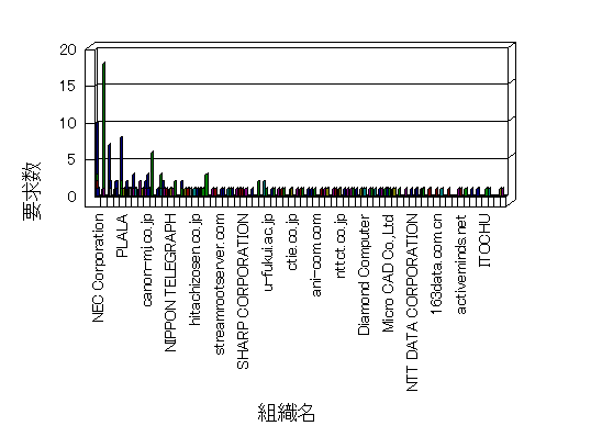 組織ユーザーにインターネット接続を提供する、商用または非営利団体、学術・行政機関などの、インターネット ドメイン で識別される団体や組織です。Microsoft Site Server Analysis は同じ組織に登録されたすべてのドメインを 1 つの組織としてグループ化します。ドメインがデータベースで使用できない場合は、1 つのインターネット ドメインが 1 つの組織を識別するのに使用されます。