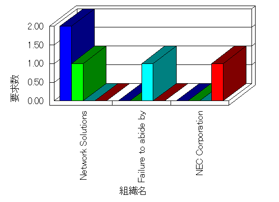 組織ユーザーにインターネット接続を提供する、商用または非営利団体、学術・行政機関などの、インターネット ドメイン で識別される団体や組織です。Microsoft Site Server Analysis は同じ組織に登録されたすべてのドメインを 1 つの組織としてグループ化します。ドメインがデータベースで使用できない場合は、1 つのインターネット ドメインが 1 つの組織を識別するのに使用されます。