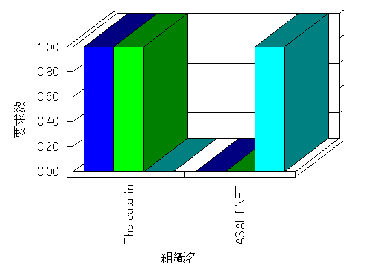 要求コンテンツの取得が正常に行われた任意のヒット です。ヒットと違って、要求はコンテンツとユーザーの挙動に関係しています。例えば、ユーザーがある HTML ページを要求して、そのページが 3 つのイメージを含む場合、Web サーバーは要求されたページの他に、そのページが含む 3 つのイメージ ファイル、およびいくつかの他の要素もログに付け加えるかもしれませんが、Analysis はこれらをあわせて 1 つのユーザーからの要求としてカウントします。