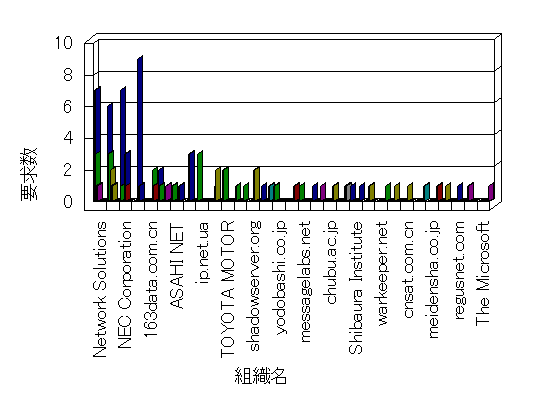 参照組織のサイトには、このサイトにリンクするページがあります。グラフでは、このサイトへのアクセス数に基づいた、上位 10 組織を示します。